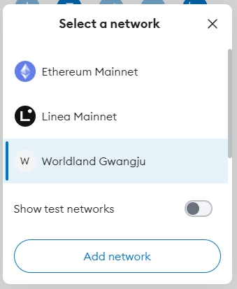 지갑을 열고 서울 메인넷 또는 광주 테스트넷으로 전환하세요.