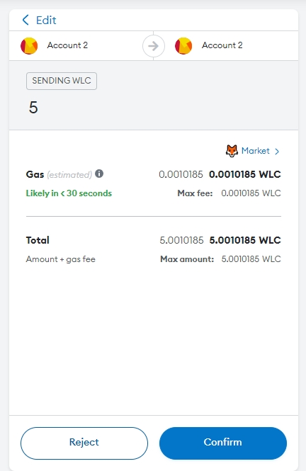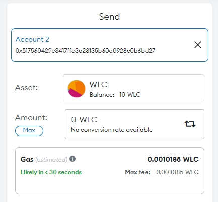 지갑을 사용하여 WorldLand 네트워크에서 WLC를 전송할 수 있습니다.
